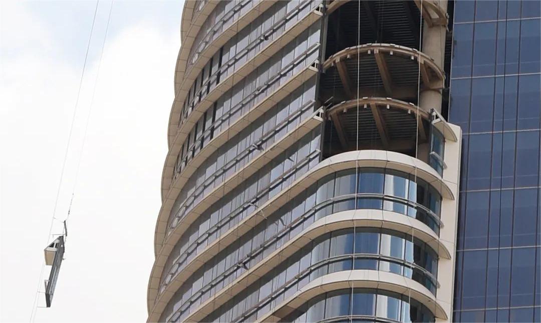 當(dāng)?shù)貧夂蜓谉岣稍?,最高氣溫可達(dá)50攝氏度,大樓幕墻需具備很強(qiáng)的防曬作用和耐高溫性能。塔樓呈雙半圓筒狀體外觀構(gòu)造,配以橫向遮陽和雙曲拉鏈梁的裝飾鋁單板,猶如古埃及女神瓦吉特的外衣。這些設(shè)計元素不僅增強(qiáng)實用功能,如減少直射日光和控制室內(nèi)溫度,且增加了建筑的視覺吸引力,使其成為一座現(xiàn)代與傳統(tǒng)相結(jié)合的建筑。