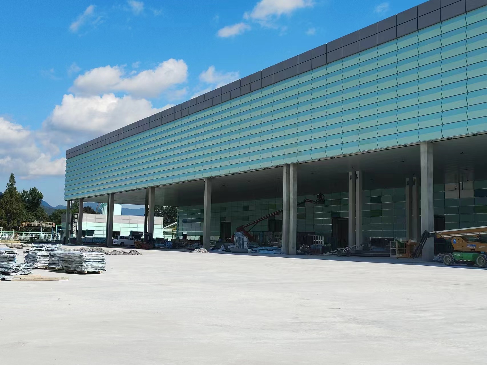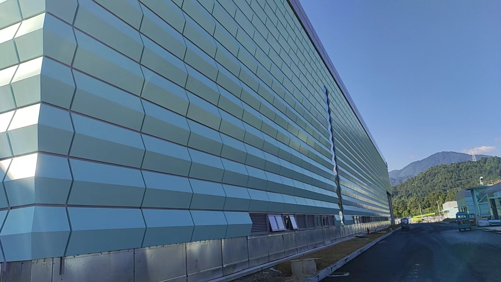 在風(fēng)景如畫的黃山腳下,雅泰鋁單板幕墻作品,農(nóng)夫山泉生產(chǎn)基地目前正在有序施工中,不禁讓人想到那句:我們不生產(chǎn)水,我們只是大自然的搬運工。