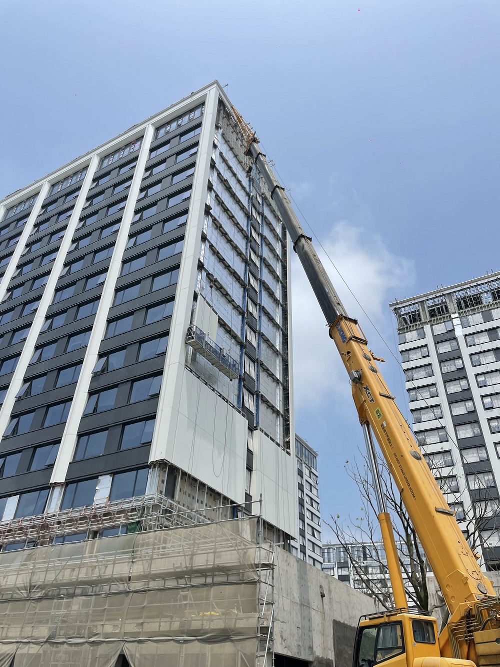 為保障幾萬名研發(fā)人員的生活配套,緊鄰華為研發(fā)中心的上海西岑單身公寓項目目前也基本完成。項目包含35棟單體建筑和1棟短租式公寓,公寓進度非常迅速,外墻采用了高效集成的裝配式單元金屬幕墻系統(tǒng)。裝配式幕墻污染少、節(jié)能環(huán)保,可減少90%以上的建筑垃圾 。同時由于裝配式幕墻二次結構已施工前置,所以相對傳統(tǒng)結構安裝,工期會提前10%-15%。