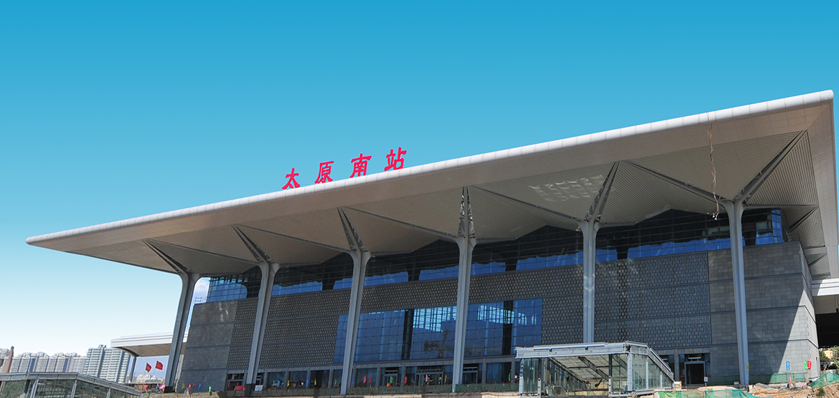 太原南站位于太原市小店區(qū)北營,東臨東山過境高速公路,西接太原武宿國際機(jī)場,南依南環(huán)高速公路,北靠長風(fēng)大街,地處國家級(jí)太原高新技術(shù)開發(fā)區(qū)、太原經(jīng)濟(jì)技術(shù)開發(fā)區(qū)及武宿物流區(qū)等三大園區(qū)交叉輻射的核心地段。占地面積45公頃,站房主體結(jié)構(gòu)為地上兩層地下一層,建筑面積約20.06萬平方米,其中客運(yùn)站房建筑面積5.5萬平方米以上,車場規(guī)模為10臺(tái)22線,設(shè)計(jì)年發(fā)送旅客量可達(dá)4000萬人次以上。工程投資估算總額約30億元以上,由鐵道部和山西省共同出資建設(shè),是山西省內(nèi)第一座高標(biāo)準(zhǔn)現(xiàn)代化的大型鐵路客運(yùn)站,為太原市標(biāo)志性建筑之一。